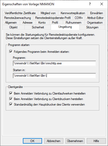 Wenn Sie in den Verbindungseinstellungen für das RDP-Protokoll das Verbinden von lokalen Geräten untersagt haben, können Sie weder in den Benutzereigenschaften des Betriebssystems noch in „Lokale Geräte“ die Nutzung der lokalen Geräte wieder einstellen! |