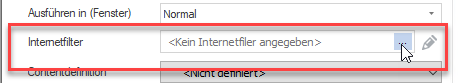 Für die Aktion Filterkonfiguration wird auf der Seite Eigenschaften der Internetfilter aktiviert und die Filterdefinition eingetragen.