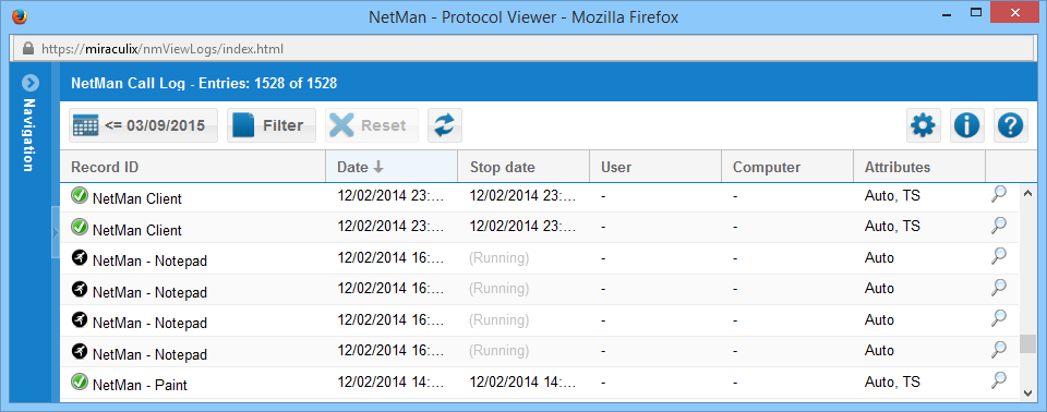 When you open the call log in the Log Viewer, the newest data record is at the top: